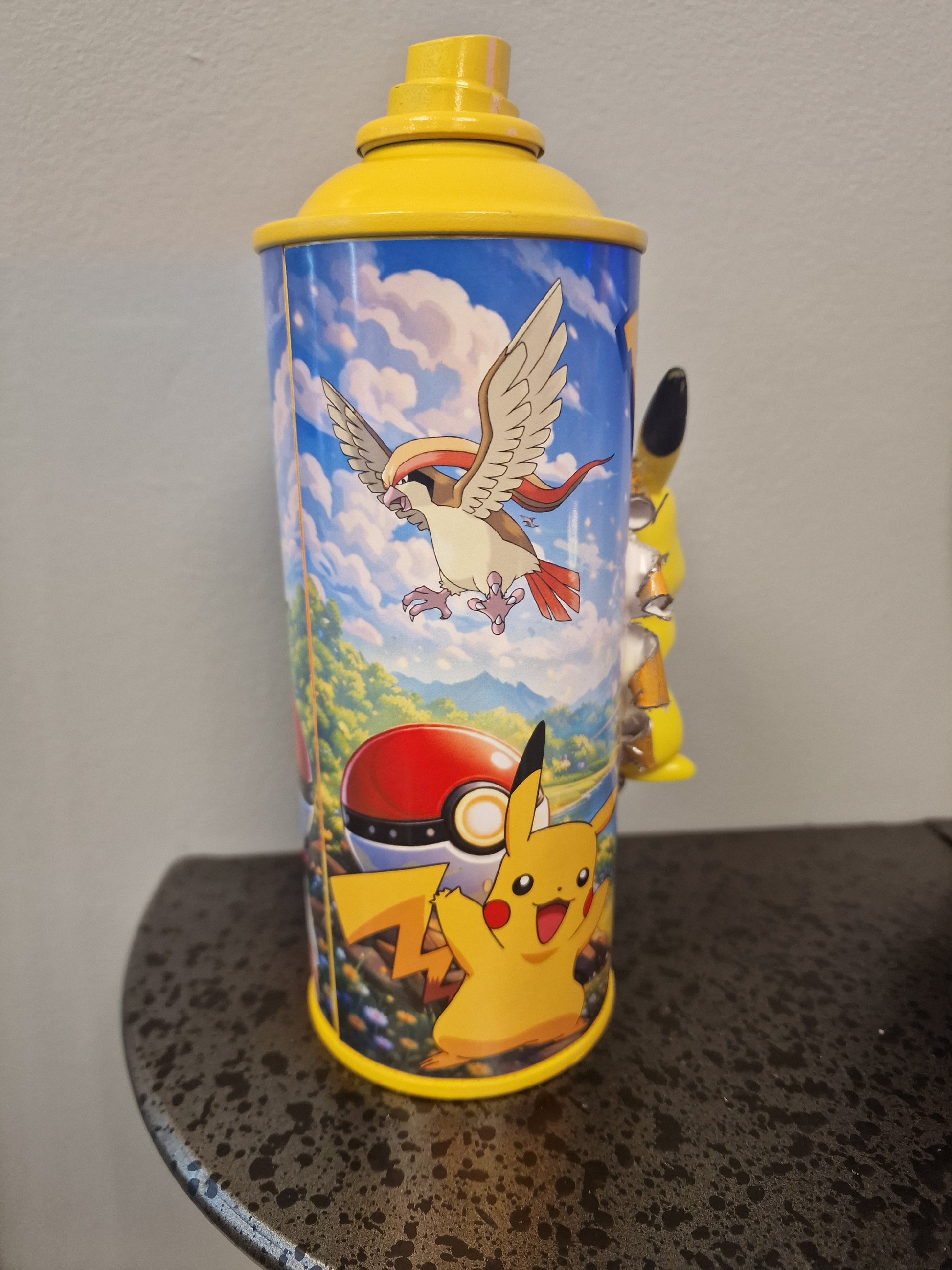 Apportez une touche originale à votre intérieur avec cette bombe de peinture custom pokemon figurine pop culture pikachu , une création artisanale réalisée à la main en France.