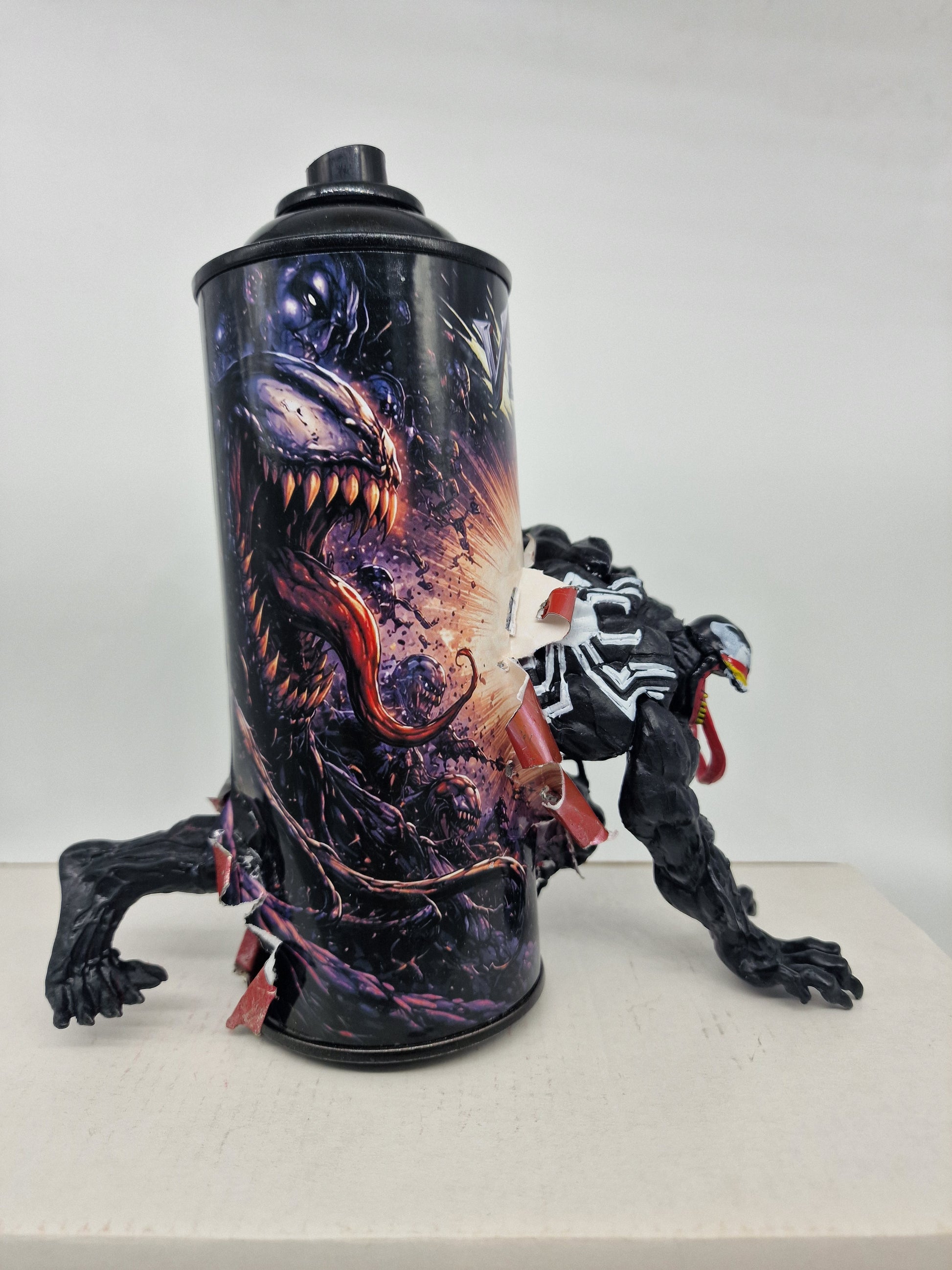 Apportez une touche originale à votre intérieur avec cette bombe de peinture custom marvel  figurine pop culture venom, une création artisanale réalisée à la main en France.
