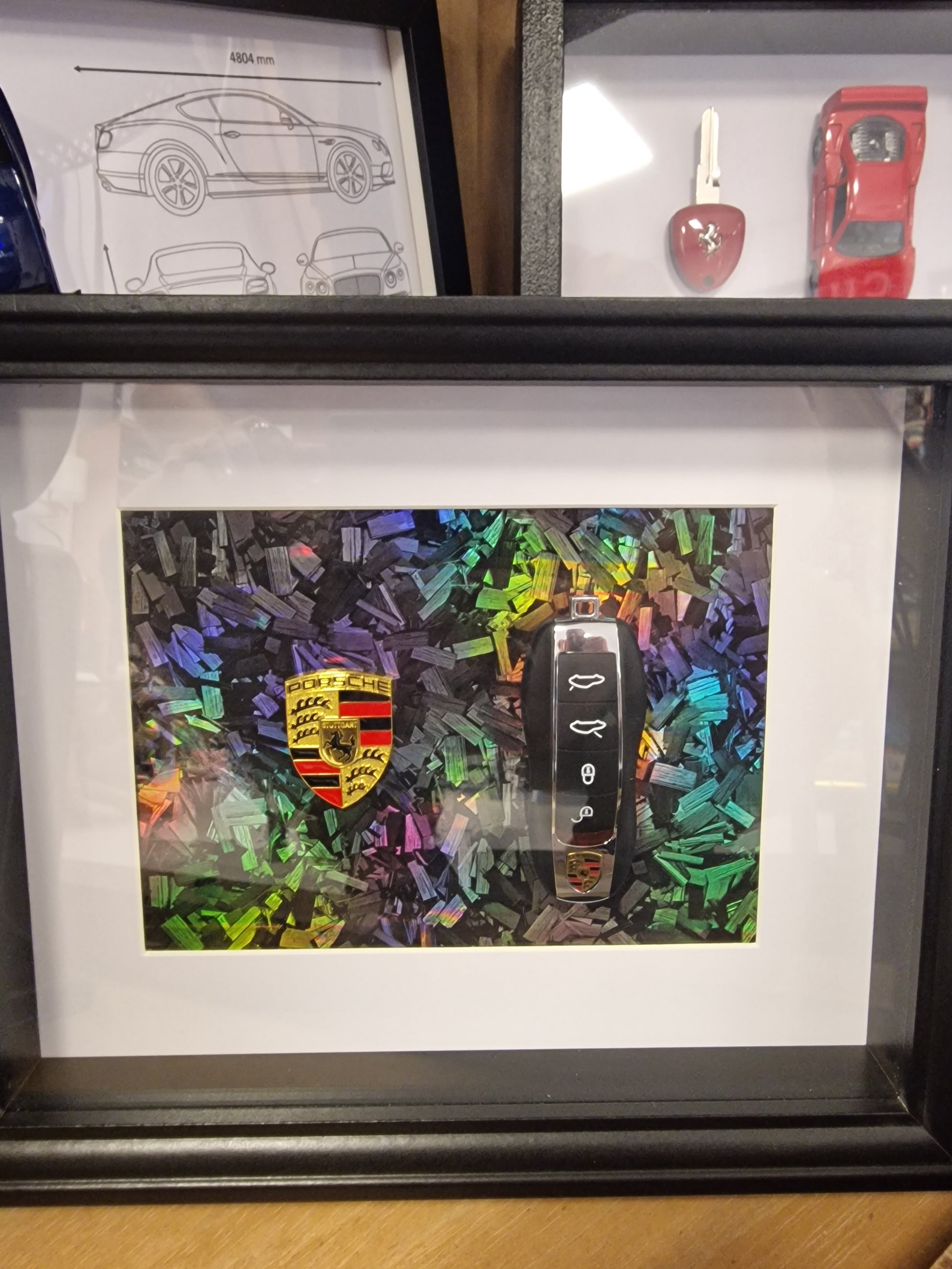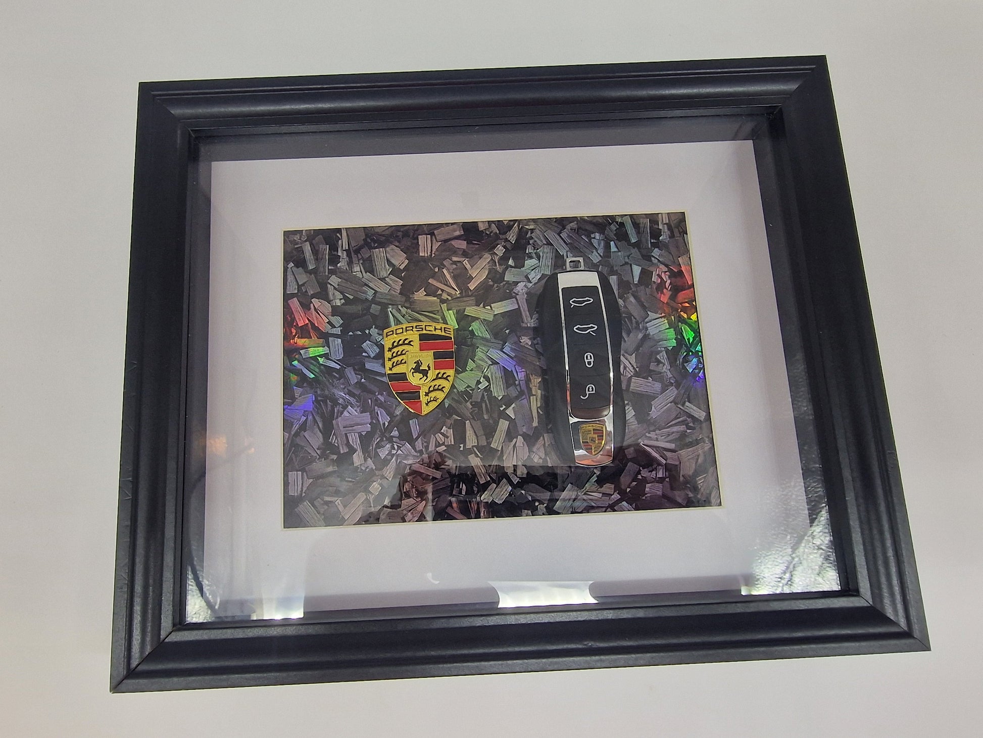 This frame features a Bentley Continental GT model key, encapsulated in a sleek, modern design. Perfect for collectors and enthusiasts, it will enhance any space with its unique and refined style.