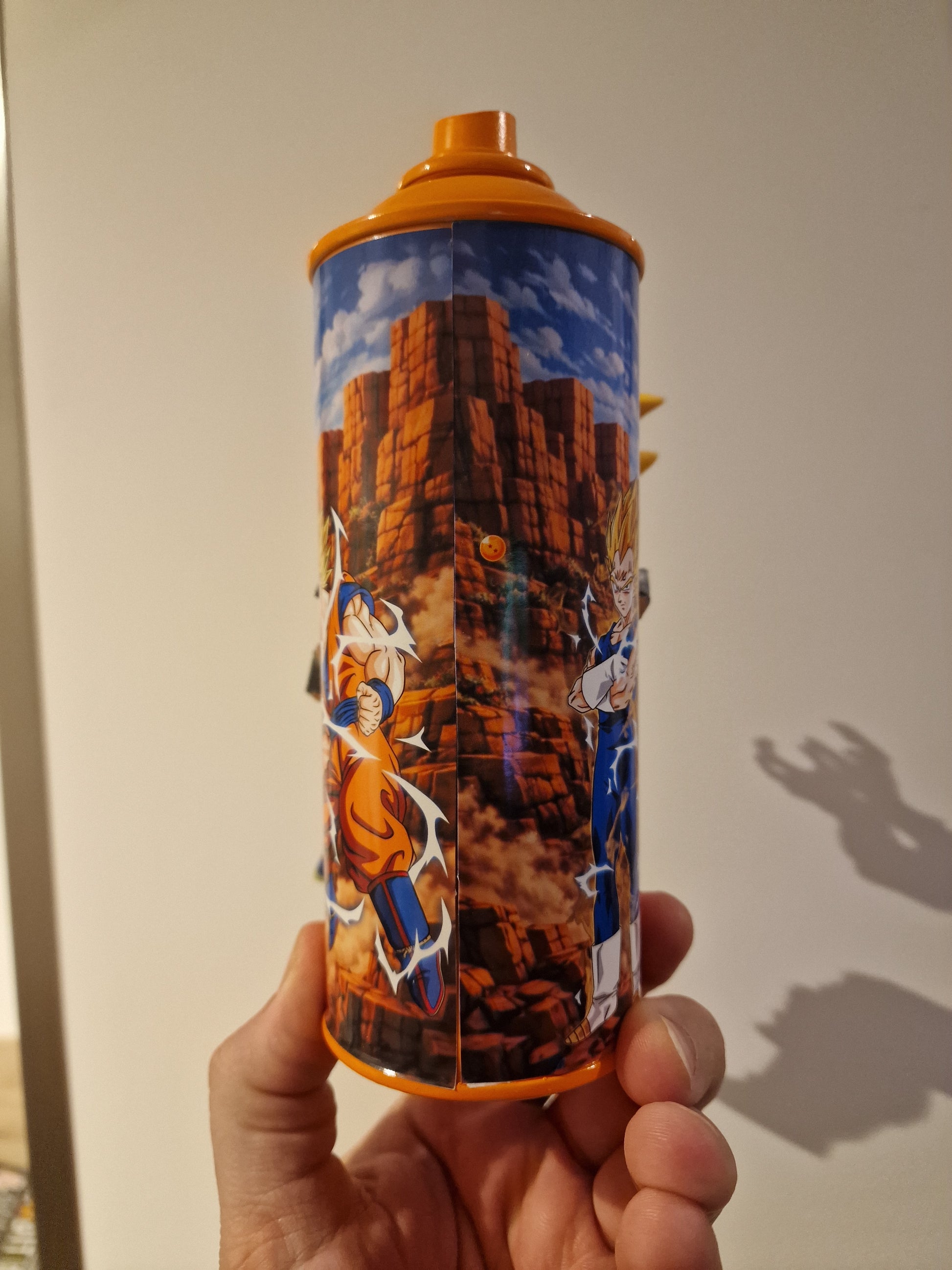 Apportez une touche originale à votre intérieur avec cette bombe de peinture custom dragon ball z  figurine pop culture sangoku, une création artisanale réalisée à la main en France.