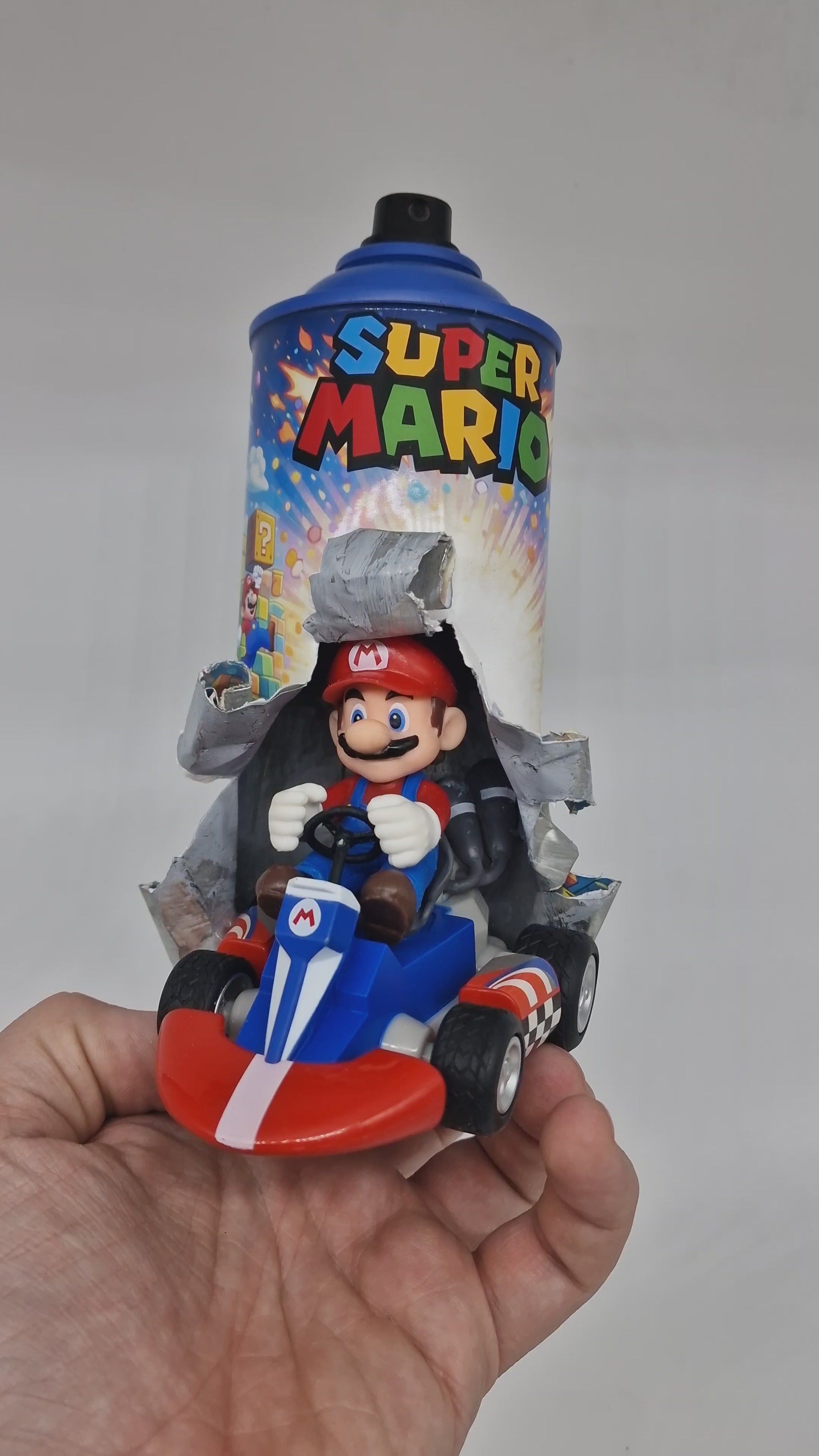 Bombe de peinture custom nintendo – Figurine mario pop culture artisanale