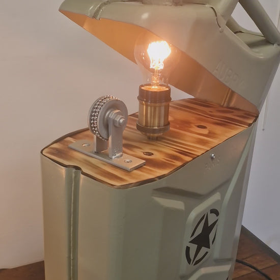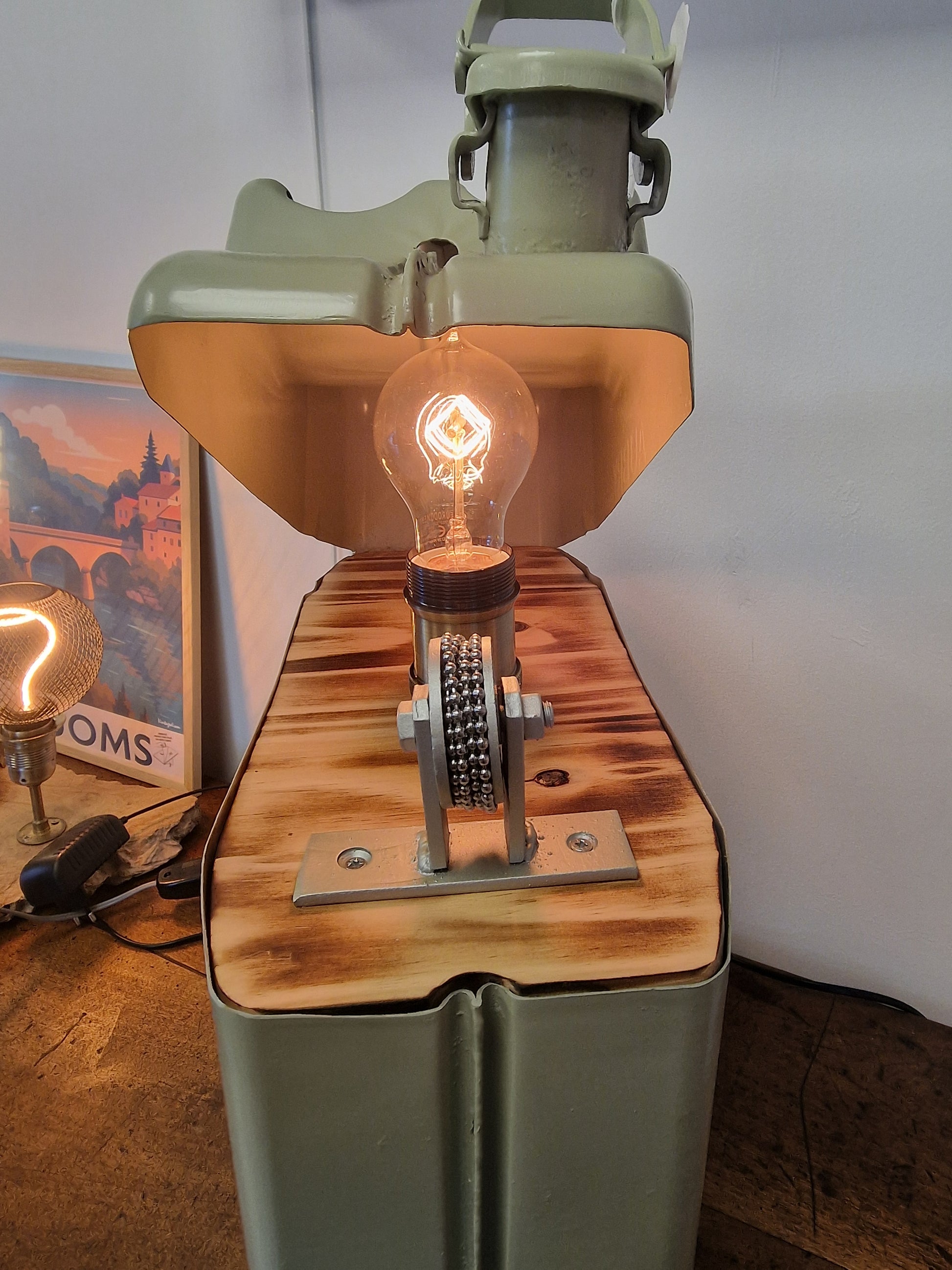 Lampe jerrican US Army artisanale – Lampe briquet vintage en métal – Création unique Made in Ardèche
