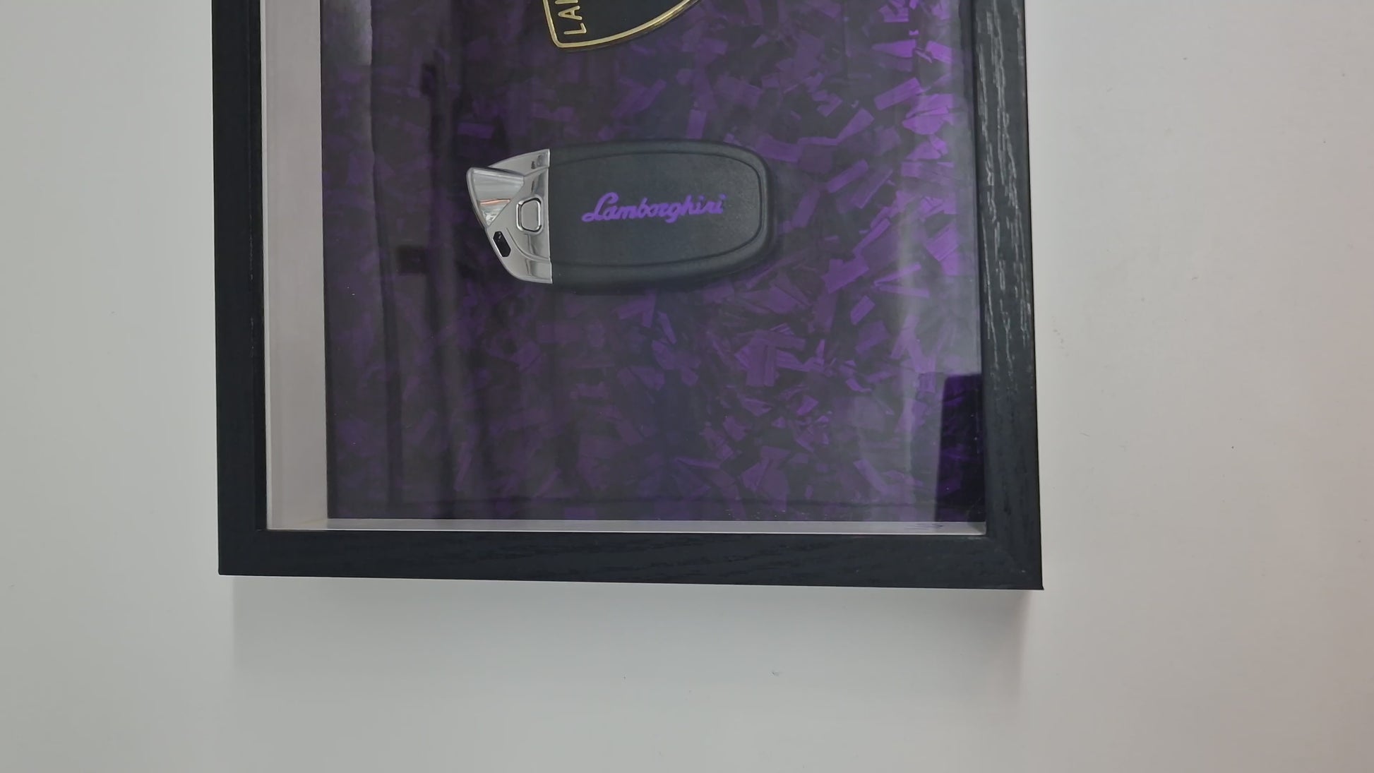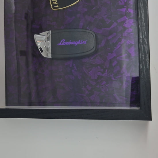 Cadre décoratif clé Lamborghini EDITION limité – Effet carbone forgé violet (20 × 25 cm)