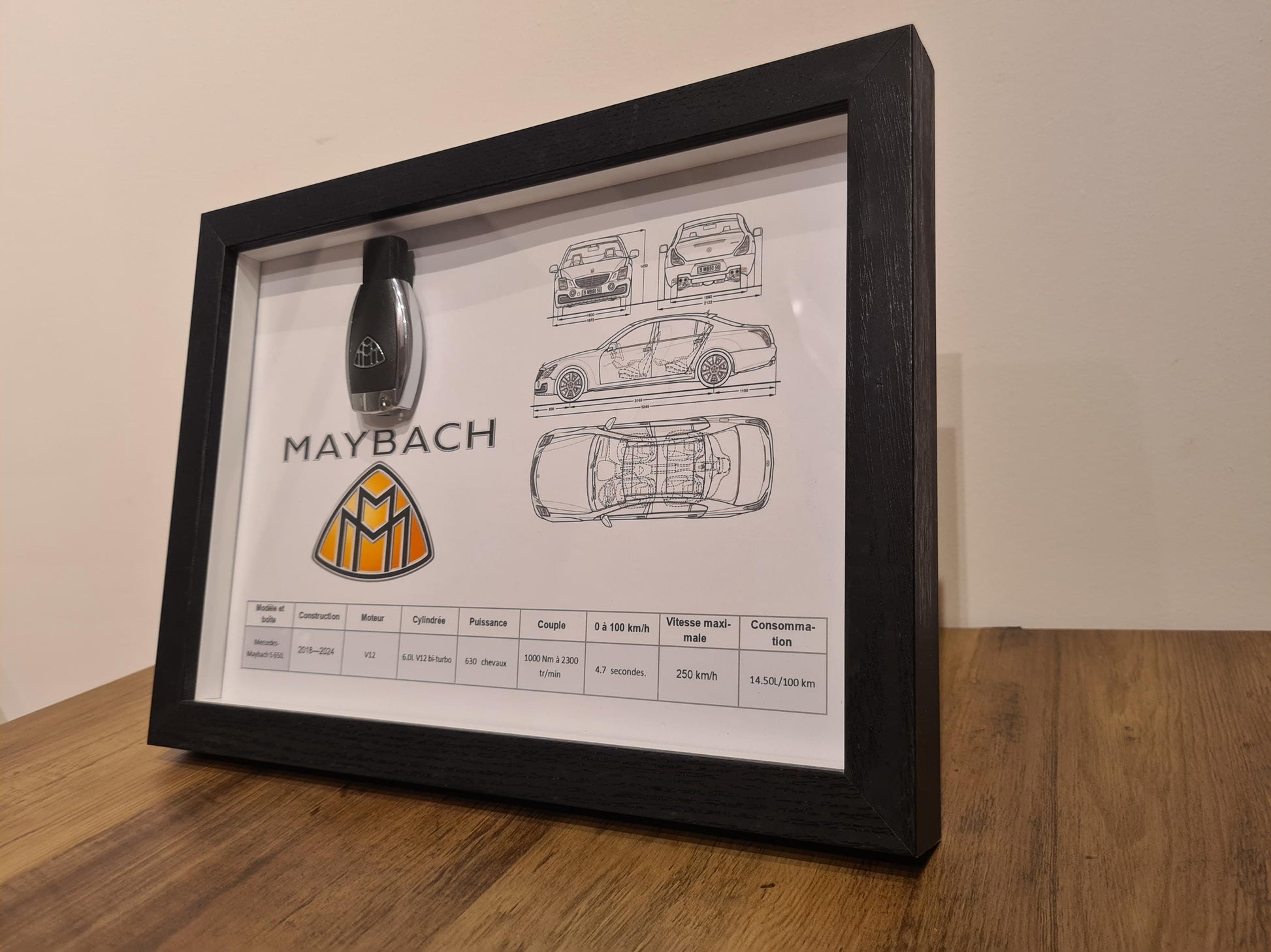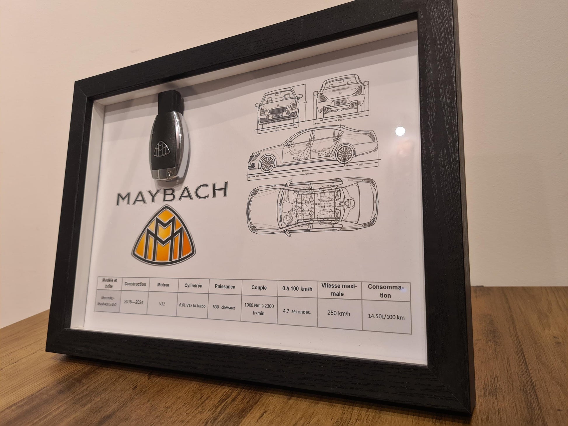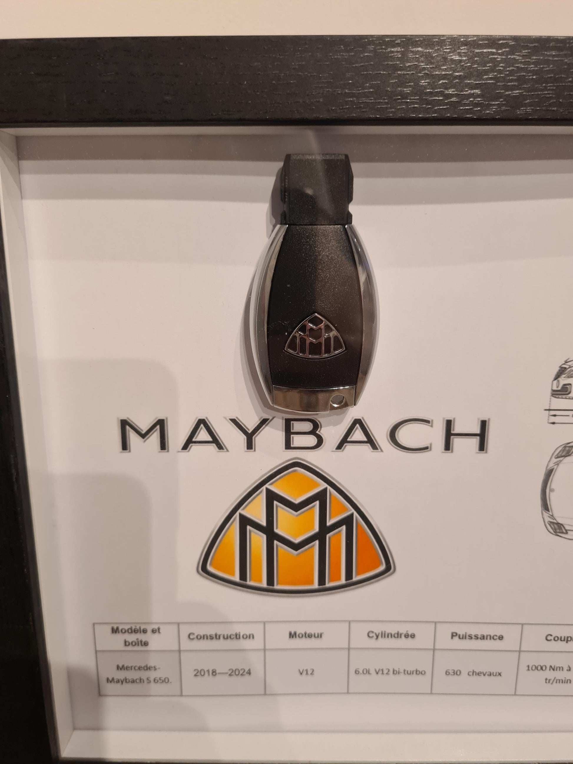 Ce cadre présente une clé Maybach du model S 650 , encapsulée dans un design élégant et moderne. Parfait pour les collectionneurs et les passionnés, il saura sublimer n‘importe quel espace avec son style unique et raffiné.