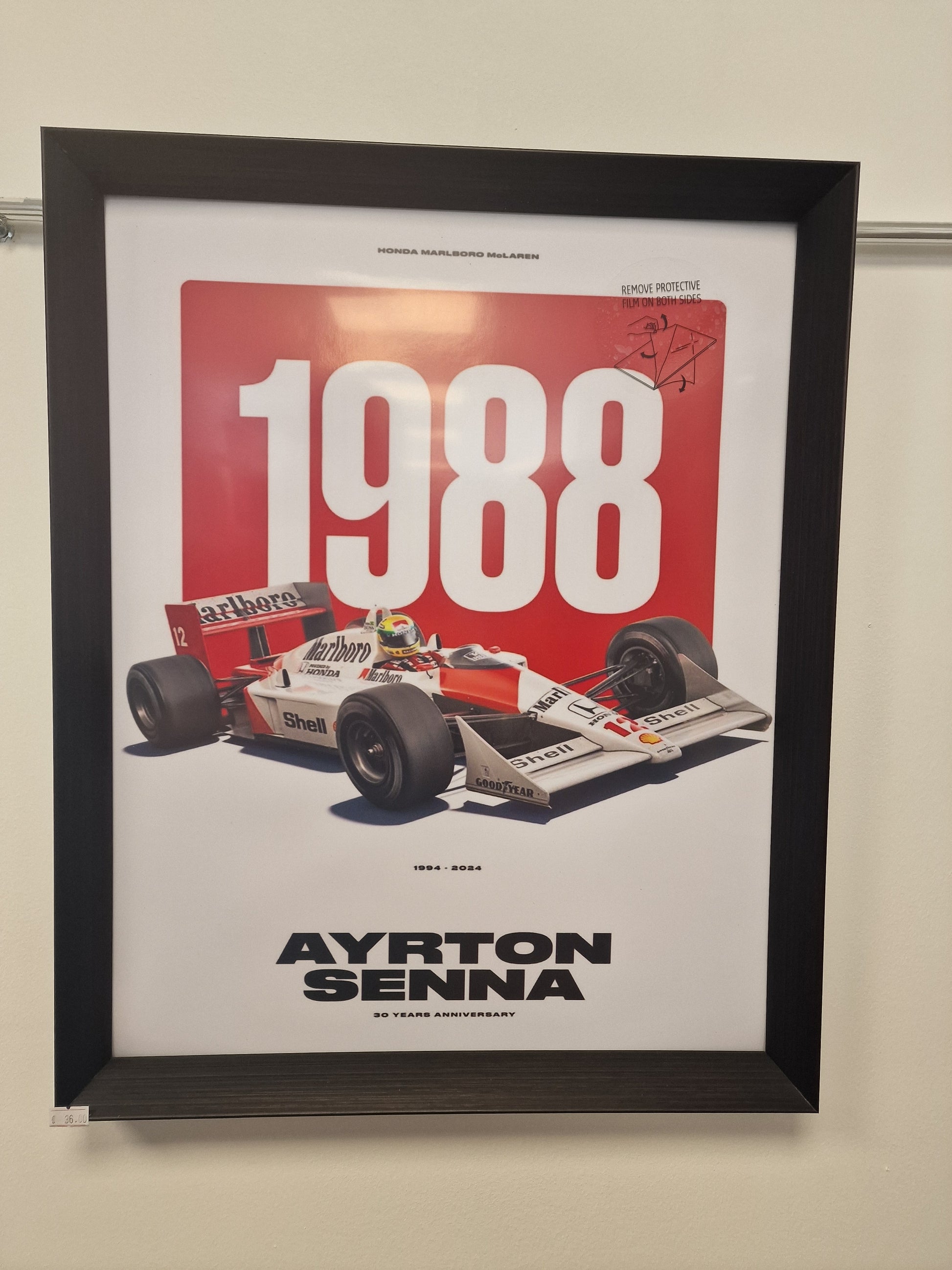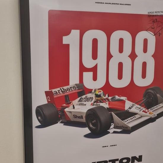 Cadre décoratif Ayrton Senna – McLaren Honda MP4/4 saison 1988 (Formats 40 × 50 cm et A3)