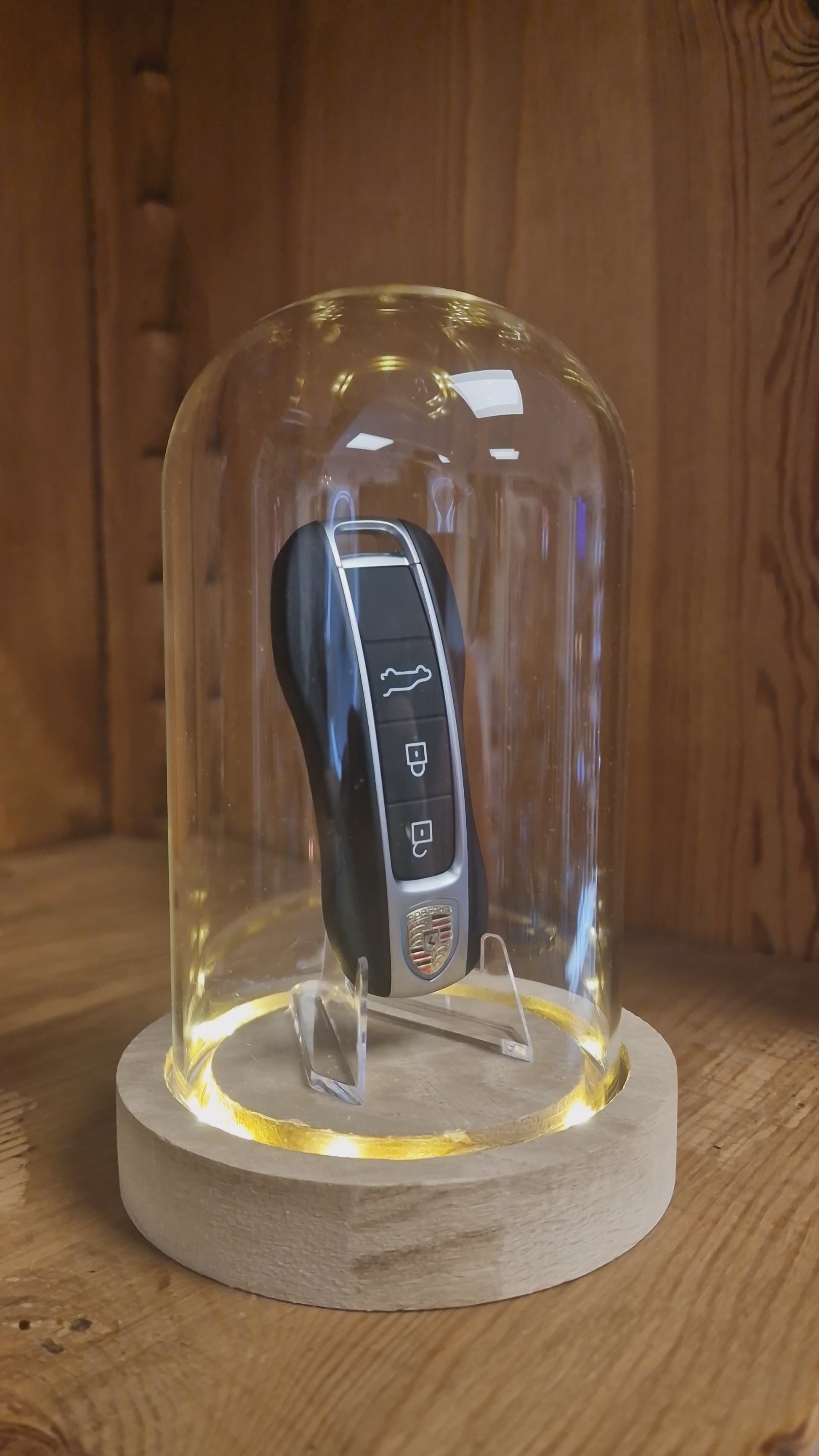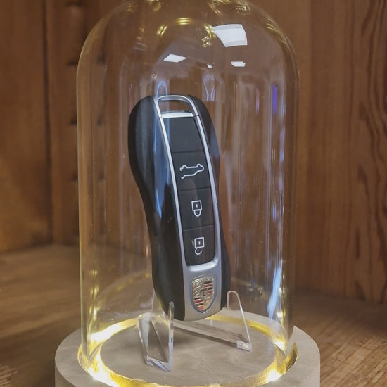 Clé Porsche Sous Cloche LED – Objet de Collection Automobile Ø 10 cm – H 16 cm