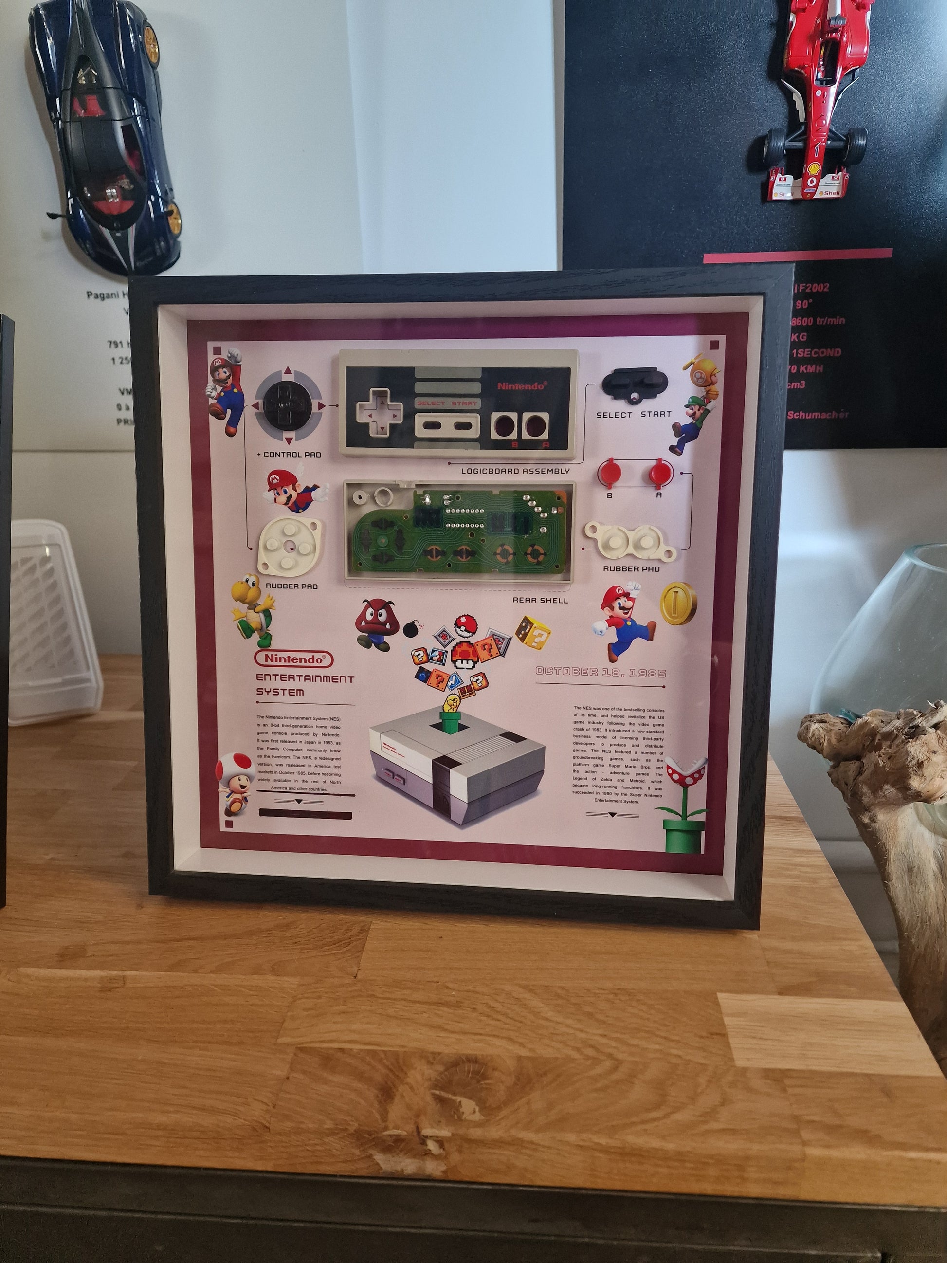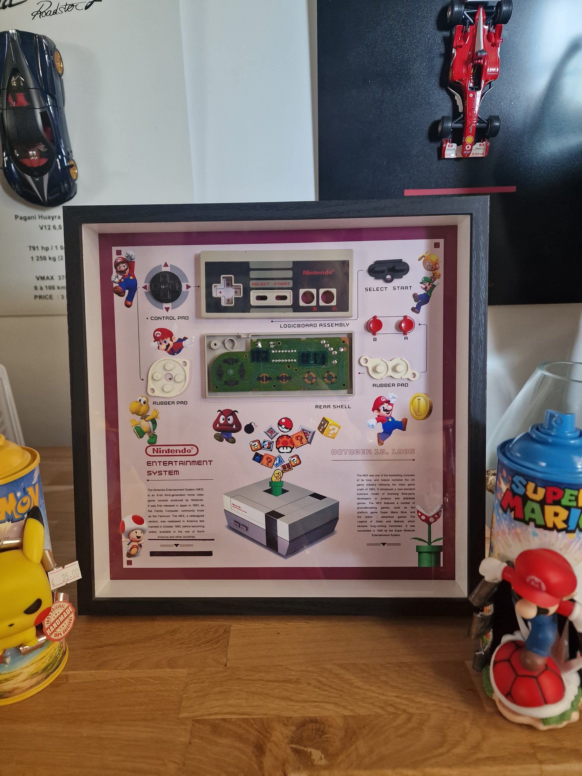 Cette création artisanale est idéale pour sublimer un espace gaming, un bureau ou un salon, et fera un cadeau original pour tout passionné de jeux vidéo rétro et de culture Nintendo.