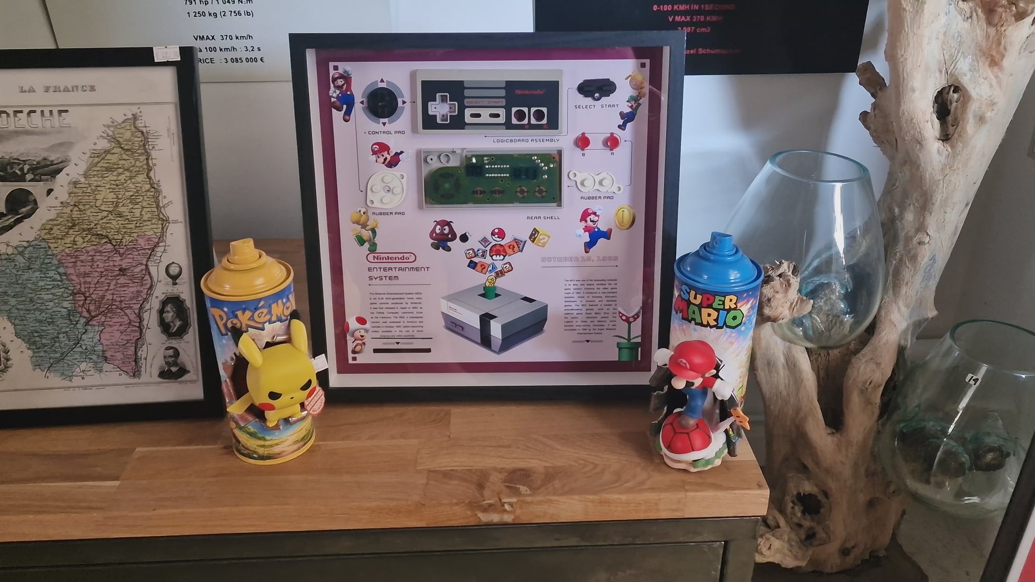 Cadre manette Famicom Nintendo – Déco gaming rétro années 80 – Objet geek vintage fait main