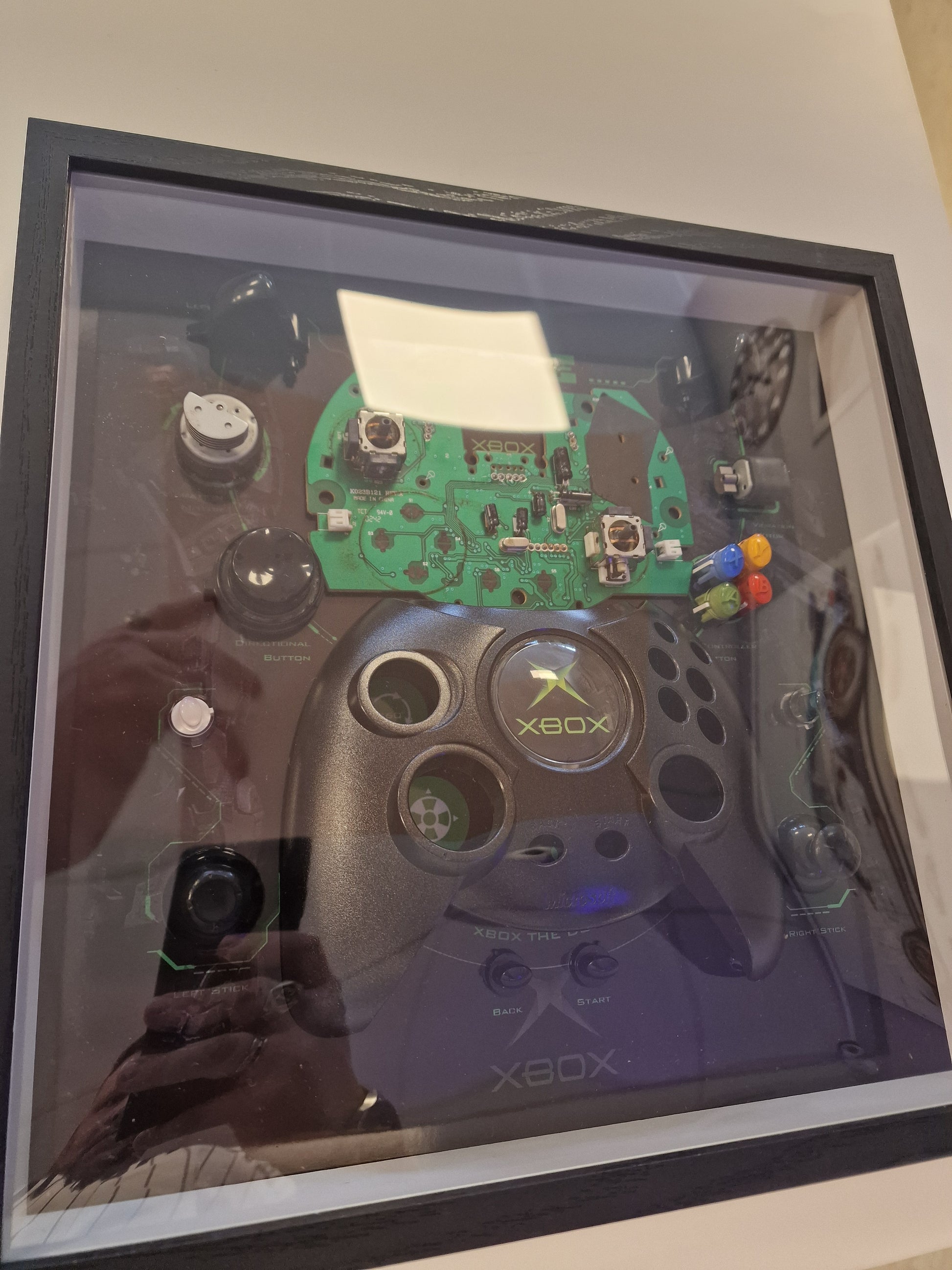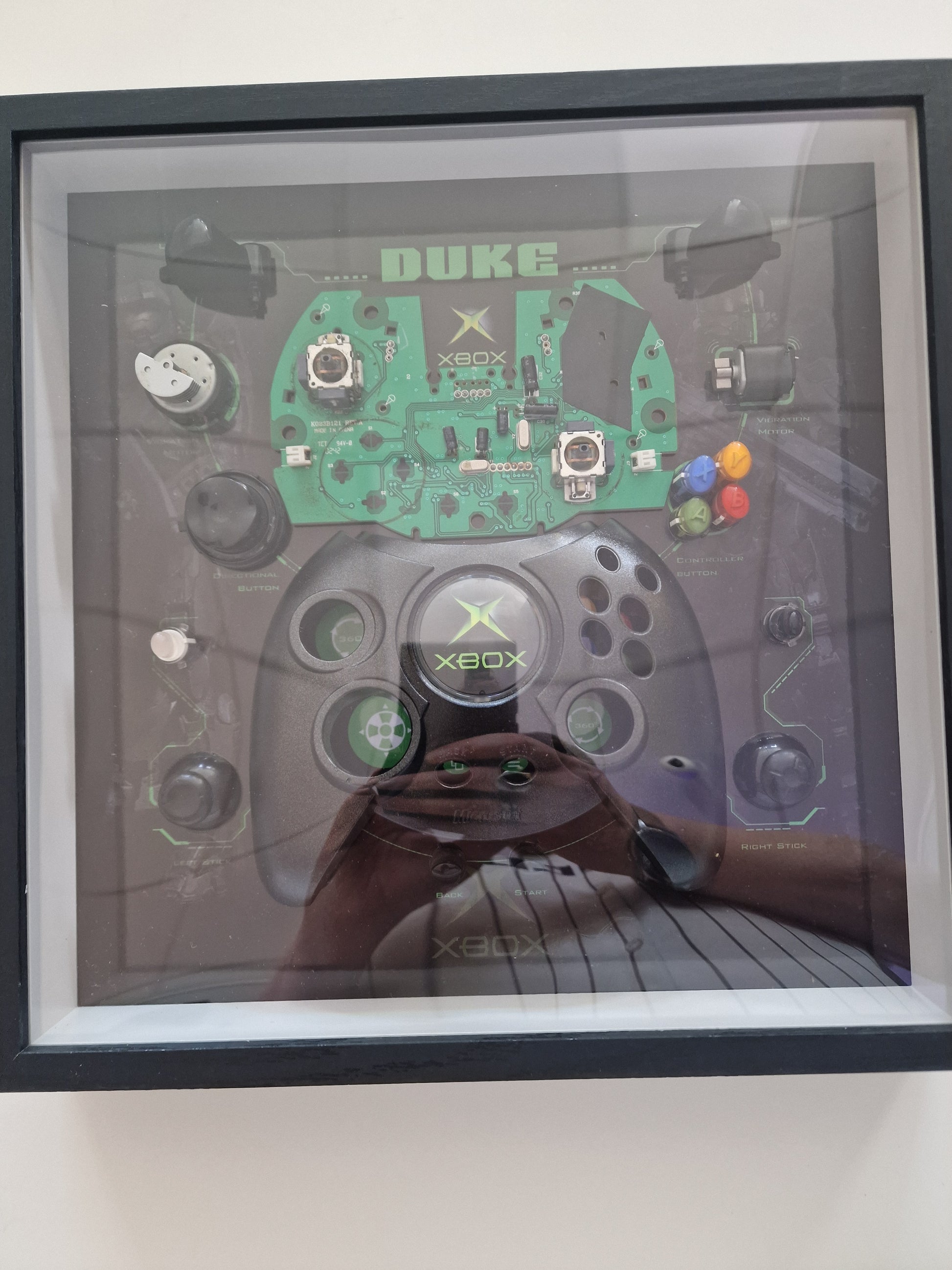 Cadre Xbox Original Controller "Duke" – Manette Xbox démontée – Tableau gaming rétro 30x30 – Déco gamer vintage