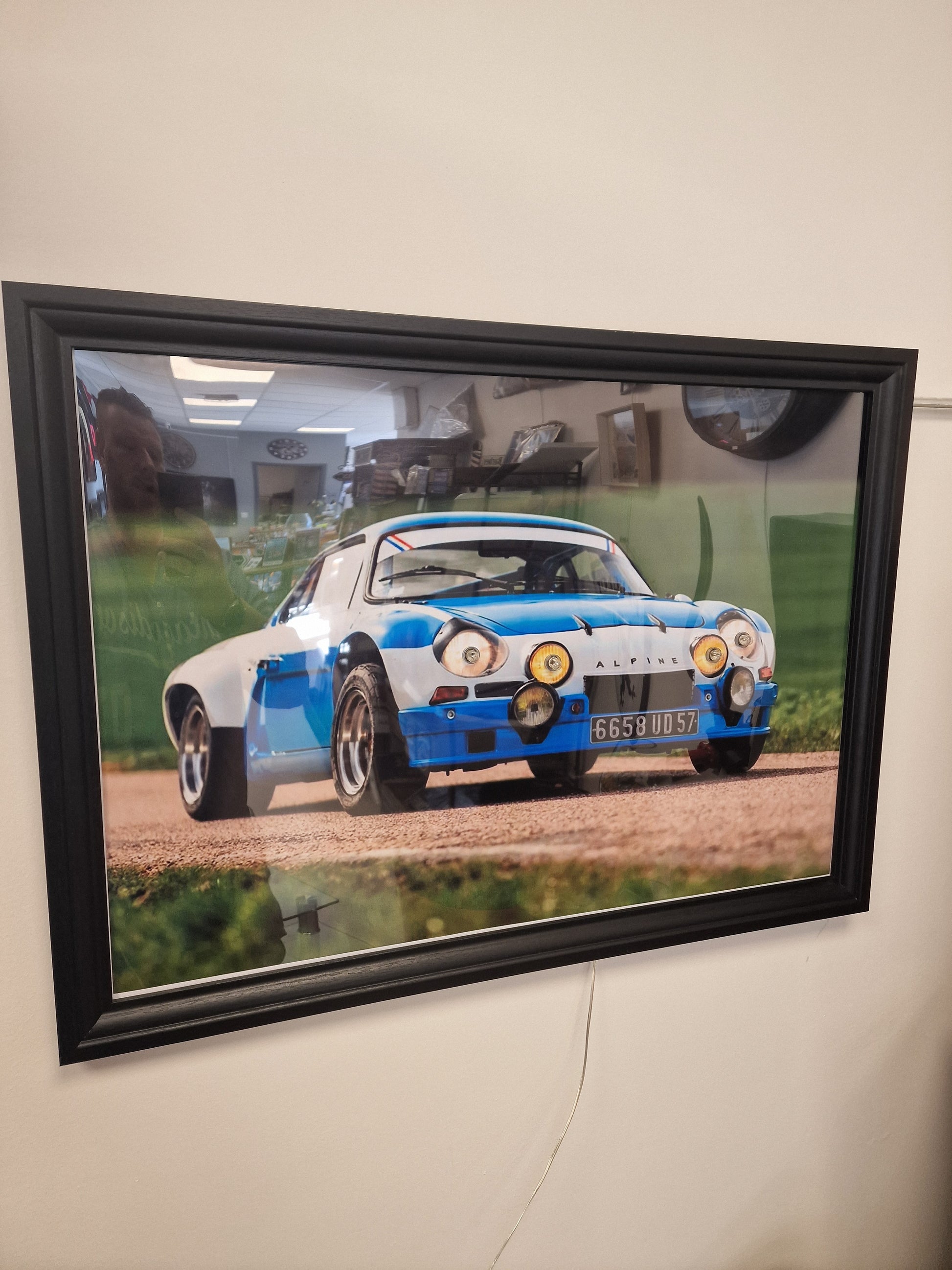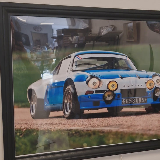 Ce cadre Alpine lumineux est parfait pour les passionnés de voitures anciennes, les amateurs de rallye et tous ceux qui apprécient les modèles mythiques du patrimoine automobile français.